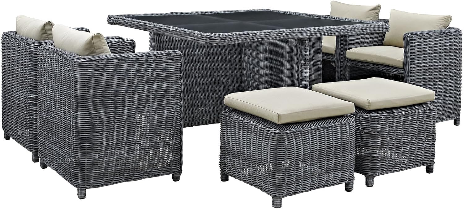 Add to compare compare now. With the ability to expand from 102 to 118 long, you can accommodate up to eight guests and really get the party going. Swanscombe outdoor 9 piece dining set with cushions. This exquisitely designed rattan garden furniture set consists of 1 table, 8 chairs, and 8 removable seat cushions, and will become the focal point of your garden or patio! Orleans rectangular teak bar height extension 9 piece patio dining set.